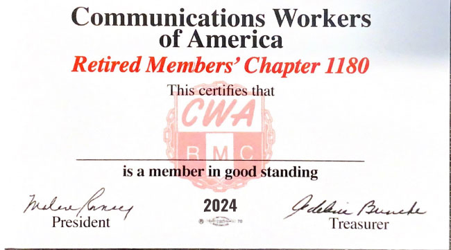 CWA Local 1180 Retired Members Chapter6 Harrison St., 3rd Floor l New York, NY 10013